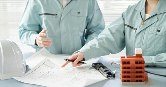 建設時の設計図面や現場調査を基に、材料や仮設方法の計画を立てます。